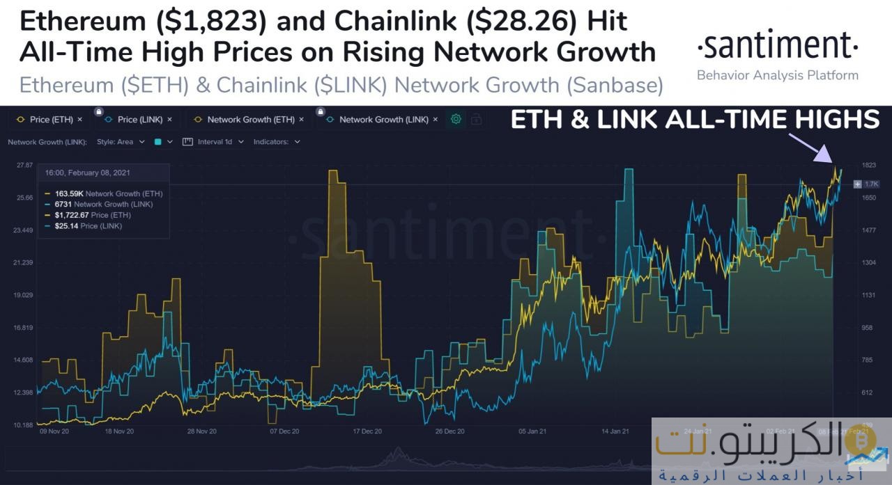لا يزال Chainlink في وضع اكتشاف الأسعار يساعد الأصول المشفرة في الوصول إلى قمم صعودية ثابتة في السوق الحالية. بالإضافة إلى ذلك ، سجلت العناوين النشطة اليومية من LINK أيضًا ارتفاعًا قياسيًا مؤخرًا ، على الرغم من تحديد الاختلاف على الرسم البياني أيضًا. ارتفع نمو شبكتها أيضًا إلى مستوى ATH مؤخرًا.