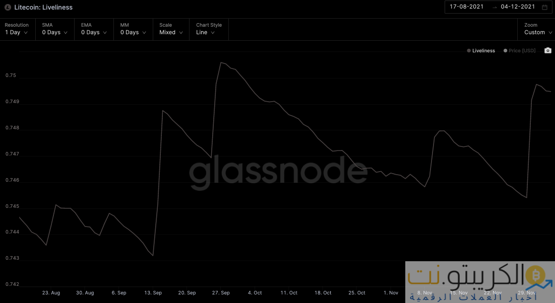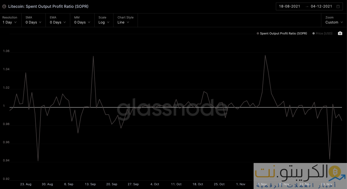 ظلت SOPR للعملة المعدنية أيضًا أقل من 1 منذ منتصف نوفمبر. في حين أن هذه النسبة تسلط الضوء على درجة الأرباح / الخسائر المحققة ، فإن قيمتها في وقت النشر عند 0.98 تشير إلى أن غالبية البائعين الذين خرجوا من السوق قد باعوا LTC بخسارة.