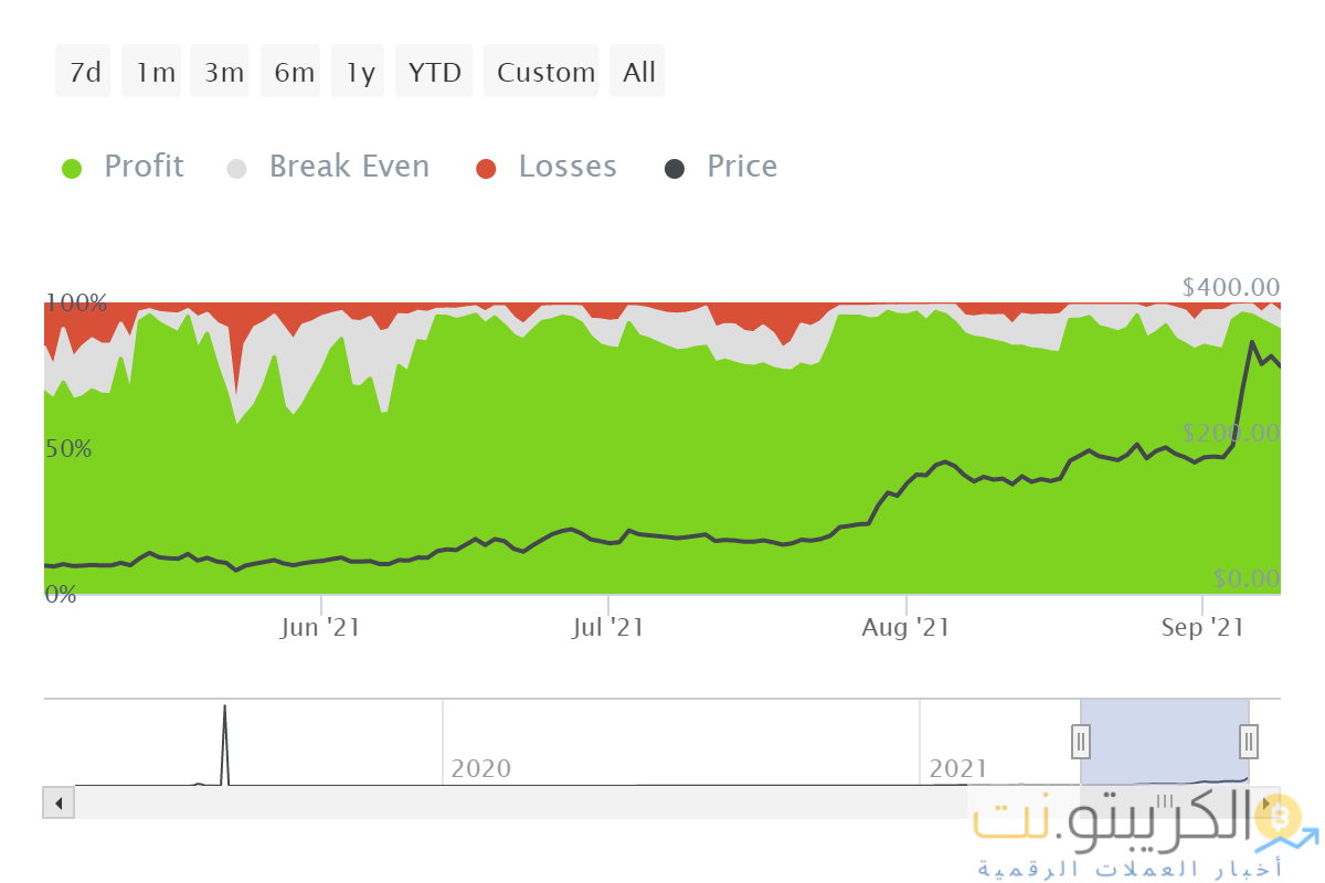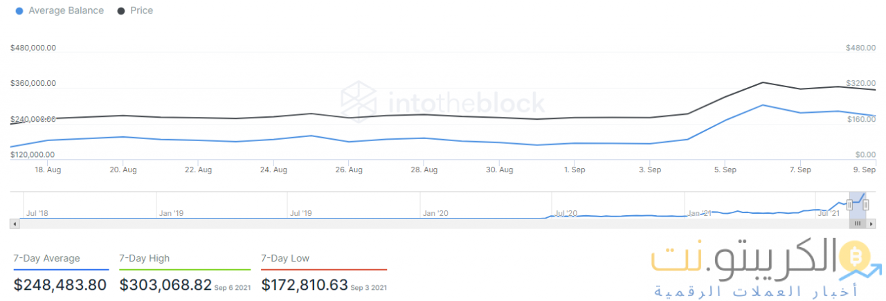 حتى في ظل تعافي السوق ، كانت ربحية Quant في ذروتها مع وجود 91٪ من العناوين في الأرباح. علاوة على ذلك ، كان متوسط الرصيد على كل عنوان 248 ألف دولار لشركة QNT في وقت النشر.