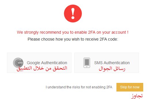 • قم بتفعيل التحقق الثنائي اذا كان المبلغ في المنصة كبير.